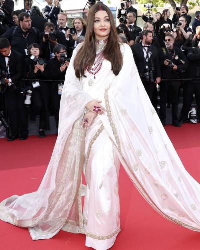 गेल्या काही वर्षांपासून ऐश्वर्या तिच्या फॅशन स्टाईलमुळे ट्रोल होत होती. मात्र यंदाच्या कान्स महोत्सवात ऐश्वर्याने जबरदस्त कमबॅक केलं आहे. हाताने विणलेल्या आयव्हरी बनारसी साडीत ती कमाल दिसत आहे.