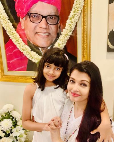 तिने तिच्या वडिलांच्या फोटोसमोर तिची आई, भाऊ, अभिषेक आणि आराध्यासोबत फोटो काढलेले आपल्याला पाहायला मिळत आहेत.