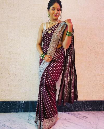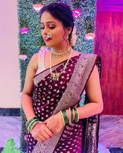 काही दिवसांपूर्वीच अक्षयाने तिच्या मैत्रिणीच्या लग्नाला हजेरी लावली. यावेळी तिने मरुन रंगाचा जरीकाठ असलेला शालू नेसला होता.