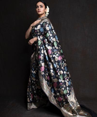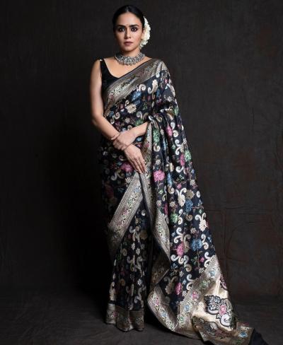 अमृताच्या काळ्या रंगाच्या साडीतील फोटोंना पसंती मिळते आहे.