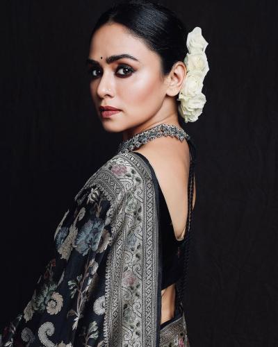 काळ्या रंगाच्या साडीत अमृता खानविलकरने केले फोटोशूट, दिसली झक्कास!