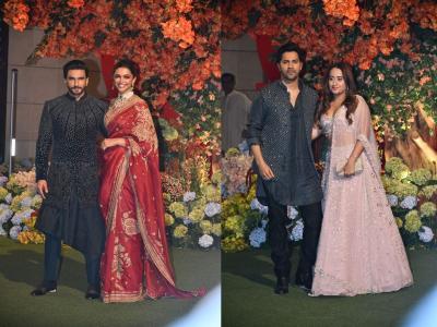 यावेळी, रणवीर सिंह आणि दीपिका पादुकोणही साखरपुड्यात दिसून आले. यावेळी दीपिकाने लाल रंगाची साडी तर रणबीरने काळ्या रंगाची शेरवानी घातली होती. यावेळी, अॅक्टर वरुण धवनही पत्नी नताशा दलालसोबत आला होता.