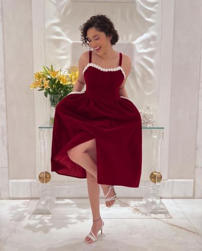 मरून कलरच्या ड्रेसमध्ये तिने एकापेक्षा एक जबरदस्त पोझ दिल्या आहेत.