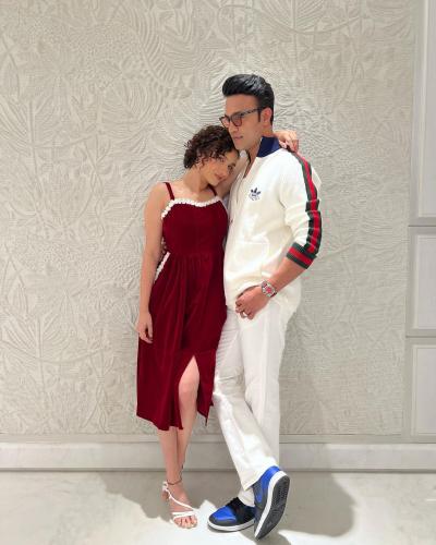 थाई-हायस्लिट ड्रेसमध्ये अंकिता टोन्ड लेग्स फ्लॉट करताना दिसतेय. तर तिचा पती विकीने ब्रँडेड व्हाईट हुडी व मॅचिंग पँट कॅरी केला आहे.