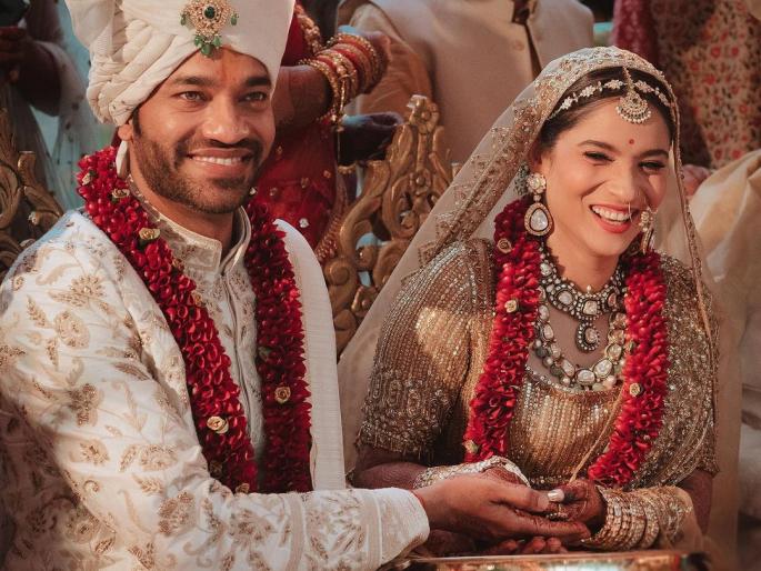 लग्नानंतर नवदांम्पत्याने सर्व मोठ्यांचा आणि देवाचा आशीर्वाद घेतला. दोघांनीही हात जोडून उपस्थितांना अभिवादन केलं.