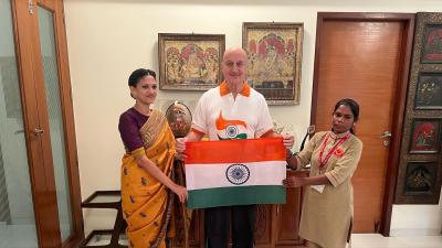 अभिनेते अनुपम खेर यांनी देखील तिरंगासोबतचा फोटो आणि व्हिडीओ शेअर केला.