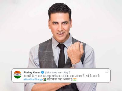 ट्विटरवर पोस्ट शेअर करताना अभिनेता अक्षय कुमारने लिहिले की, आजादी के 75 साल का अमृत महोत्सव मनाने का वक्त आ गया है। गर्व से शान से #हर घर तिरंगा लहराने का वक्त आ गया है।'