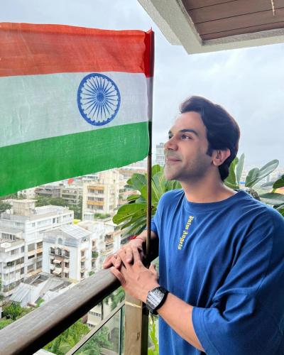 बॉलीवूड अभिनेता राजकुमार राव यानेही 'हर घर तिरंगा' मोहिमेत सहभागी होताना घरी तिरंगा फडकवतानाचा फोटो शेअर केला आहे.