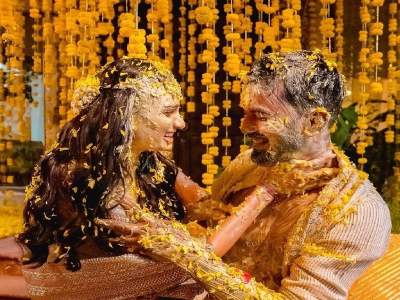 केएल राहुलनेही आपल्या इंस्टाग्रामवर पत्नीच्या कॅप्शनसह चार फोटो शेअर केले. पहिल्या फोटोमध्ये दोघे एकमेकांना हळदी लावताना दिसत आहेत. शेवटच्या दोन फोटोंमध्ये राहुल आणि अथिया एकमेकांसोबत रोमँटिक पोज देताना दिसत आहेत.