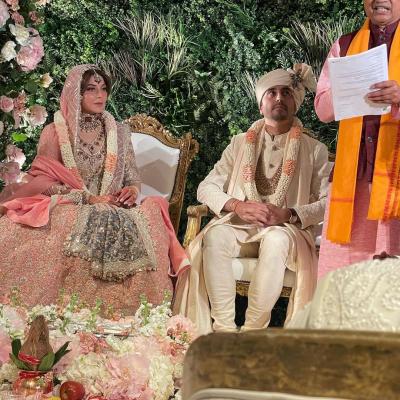गौतमच्या लूकबद्दल सांगायचे तर त्याने क्रीम रंगाची शेरवानी घातली होती. यासोबत त्याने कनिकाला मॅचिंग नेकलेस घातला. तपकिरी लेदर बूट आणि पगडीसह त्याचा लूक देखील पूर्ण केला. या वेडिंग लूकमध्ये गौतम खूपच हॅण्डसम दिसत होता.