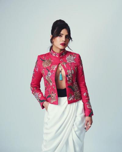फ्रंट ओपन जॅकेटमधील तिच्या या लूकमध्ये प्रियंकाने डॅशिंग एण्ट्री केली आणि सर्वांच्या नजरा तिच्यावर खिळल्या.