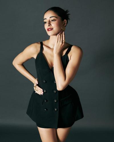 ब्लॅक ड्रेसमध्ये अनन्या पांडे खूपच ग्लॅमरस दिसते आहे.