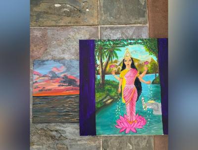अगदी सुंदर पद्धतीने माता लक्ष्मी तसेच सूर्यास्त होतानां चित्र रेखाटून त्याची झलक तिने चाहत्यांना दाखवली आहे.
