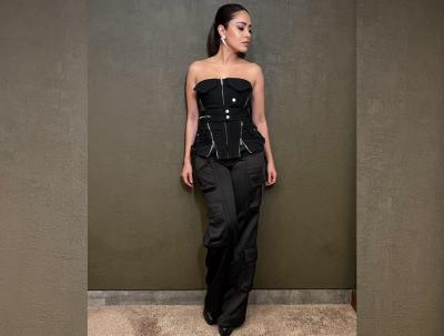 नुकतेचं तिनं फंकी ऑफ शोल्डर ब्लॅक टॉप आणि कार्गो स्टाइल मॅचिंग पॅन्टमध्ये फोटोशुट केलं आहे.