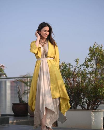 'तेरी जुल्फों की लहराती अंगडाईयाँ..' रकुल प्रीत सिंगचा इंडो-वेस्टर्न लूक