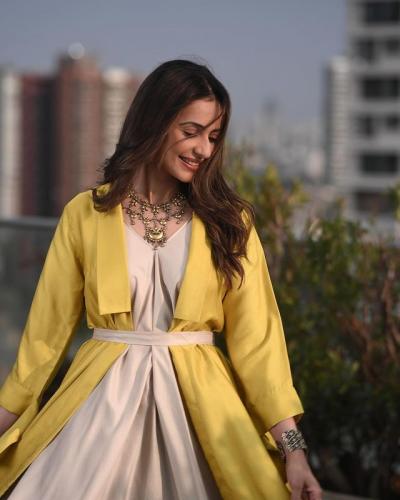तपकिरी रंगाचा ड्रेस त्यावर पिवळ्या रंगाचं जॅकेट परिधान करत तिने चाहत्यांच्या काळजाचा ठोका चुकवला आहे.