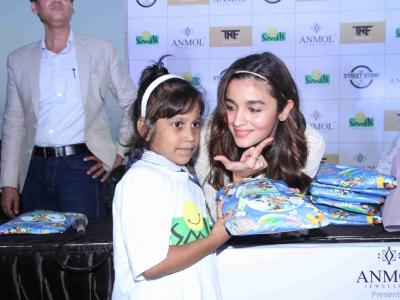 ‘बद्रिनाथ की दुल्हनिया’ चित्रपटाच्या शूटिंगमध्ये व्यस्त असलेली आलिया भट्टने काल वांद्रे येथील एम्फिथिएटरमध्ये एका स्ट्रिट स्टोअरला भेट दिली. लहान मुलांसोबत तिथे तिने फोटोसेशन केले. त्यांना गिफ्ट्स देऊन त्यांच्या चेहºयावर हास्य तिने फुलवले. त्या लहान मुलांमध्ये गेल्यावर आलियाही एकदम छोटीशी चिमुरडीच वाटू लागली हो...ना...!