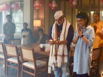 यावेळी आमिर व अद्वैतच्या टीमचे अनेक लोक पूजेत सामील झालेले दिसले. आमिर लवरकच एका प्रोजेक्टवर काम सुरू करणार असल्याचं मानलं जात आहे.