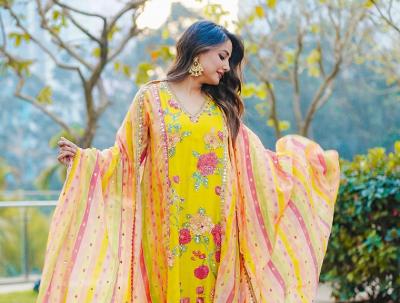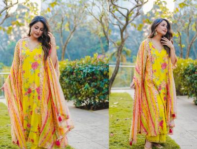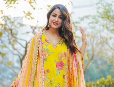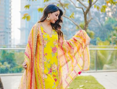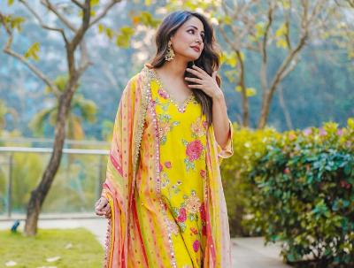 या नव्या फोटोशूटमध्ये हिना पिवळ्या रंगाच्या ड्रेसमध्ये दिसत आहे.
