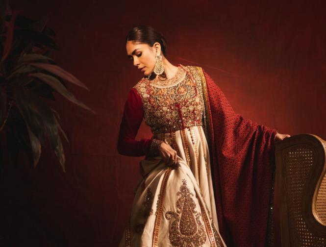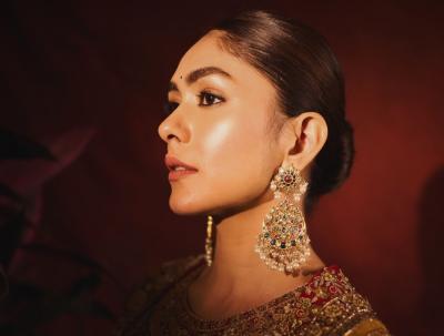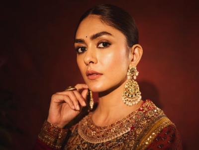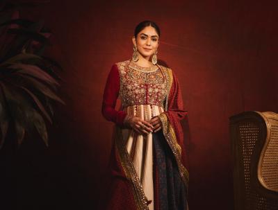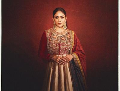 मृणाल ठाकूरने अनारकली ड्रेस परिधान केला आहे. या भरजरी ड्रेसमध्ये मृणाल ठाकूर अत्यंत सुंदर दिसत आहे.
