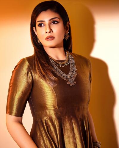 Raveena Tandon : गोल्डन ड्रेसमध्ये रवीना टंडन खूपच ग्लॅमरस दिसते आहे.