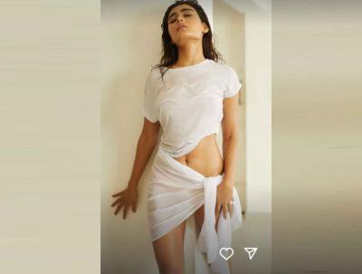 चिंब भिजलेल्या पांढऱ्या कपड्यात तिने फोटो शेअर केलेत. या लूकमध्ये तिने एकापेक्षा एक हॉट पोज दिल्या आहेत.