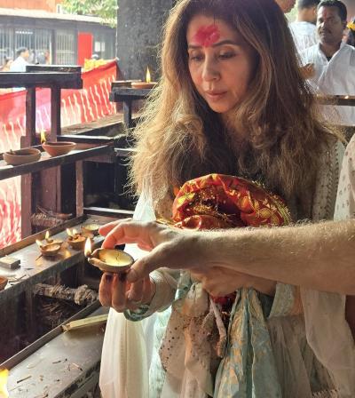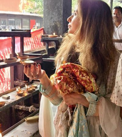 तिच्या कपाळावर लाल टिळा लावलेला दिसला आणि फोटोत ती मंदिरात धार्मिक विधी करताना दिसली.