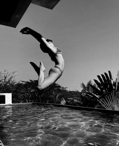 या फोटोशूटमध्ये अलाया फर्निचरवाला स्विमिंग पूलमध्ये उडी मारताना दिसते आहे. (फोटो: इंस्टाग्राम)