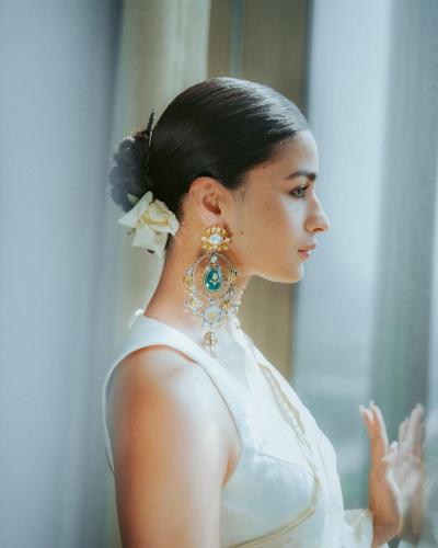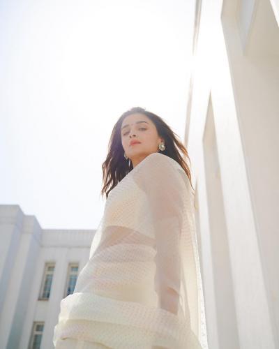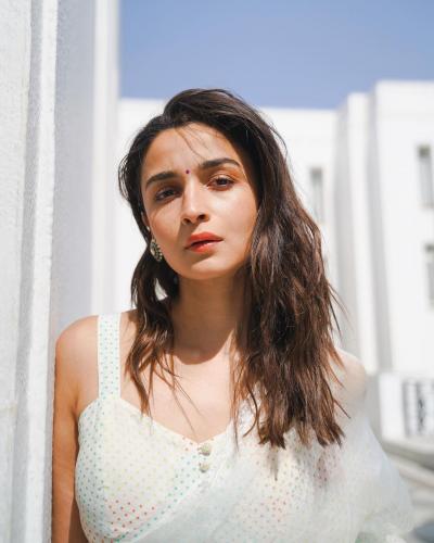 या फोटोंमध्ये आलिया व्हाईट कलरच्या साडीमध्ये वेगवेगळ्या पोज देताना दिसत आहे. (फोटो: इंस्टाग्राम)