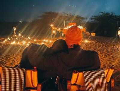 कतरिना आणि विकीने राजस्थानमध्ये क्वॉलिटी टाईम घालवला. कतरिना विकीच्या खांद्यावर डोकं ठेवून बसलेला पाठमोरा फोटो सोशल मीडियावर तुफान व्हायरल होतोय. राजस्थानच्या थंडीत त्यांनी 'कोजी' पोज दिली आहे.