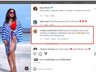 "मालदीव सरकारने आपला अपमान केला. आणि तू मालदीवमध्ये फिरत आहेस, तू तर देशद्रोही निघालीस," अशी कमेंटही केली आहे.