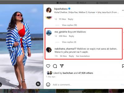 "मालदीव रिसॉर्टचे फोटो पोस्ट करू नकोस", अशी कमेंटही एका नेटकऱ्याने केली आहे.