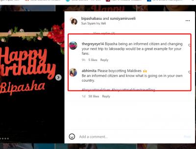 लक्षद्वीप आणि मालदीववरुन सुरू असलेल्या वादादरम्यानच बिपाशाने मालदीवमध्ये बर्थडे साजरा केला. त्यामुळे बिपाशाला ट्रोल केलं गेलं आहे.