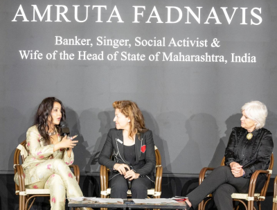 या चर्चासत्रात अमृता फडणवीस यांनी जागतिक स्तरावर महिलांच्या हक्कांसाठी आणि समान संधीसाठी आपले विचार मांडले.