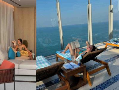 निवांत पुस्तक वाचतानाचे फोटो तर खूपच मस्त आहेत. 'A sweet gateaway' असं कॅप्शन तिने लिहिलं आहे.