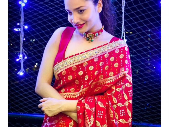 नव्या वधूप्रमाणे नटून थटून अंकिता लोखंडेने साजरा केला करवाचौथ, फोटो पाहून फॅन्स म्हणाले- चाँद नजर आया