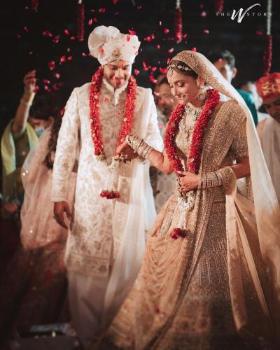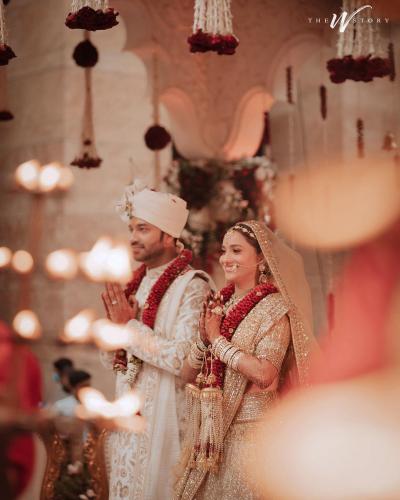 लग्नानंतर नवदांम्पत्याने सर्व मोठ्यांचा आणि देवाचा आशीर्वाद घेतला. दोघांनीही हात जोडून उपस्थितांना अभिवादन केलं.