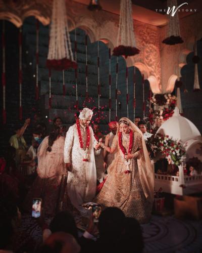 घंटानाद आणि शंखनाद सुरू होता आणि अंकिता व विकी यांनी एकमेकांना वरमाला घातली.