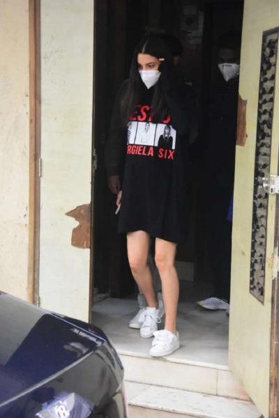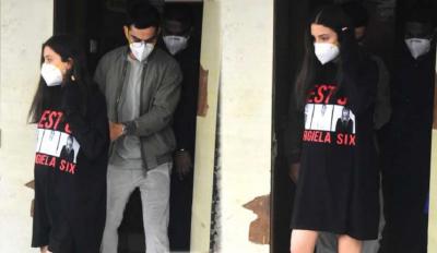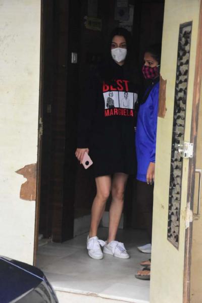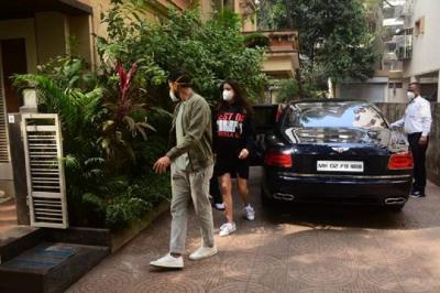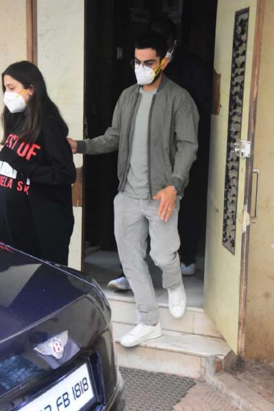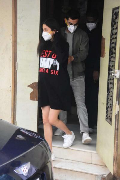 यावेळी अनुष्काने ब्लॅक कलरचा लॉन्ग टी-शर्ट घातला होता. तोंडावर मास्क आणि मोकळे केस असा तिचा लूक होता.