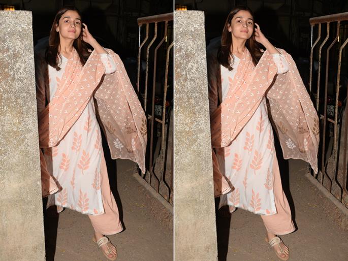 1 / 6नुकताच आलिया भटला तिच्या 'राझी' चित्रपटासाठी सर्वोत्कृष्ट अभिनेत्रीचा पुरस्कार मिळाला. याव्यतिरिक्त आलिया रणबीर कपूरसोबतच्या रिलेशनशीपमुळे चर्चेत आली.2 / 6आलिया जुहूमध्ये सलूनमधून बाहेर पडताना दिसली. यावेळी ती साध्या सलवार सूटमध्ये दिसली.3 / 6सध्या आलियाला एथनिक लूक खूप आवडतो आहे. तिचा आगामी चित्रपट 'कलंक'मधील लूकदेखील प्रेक्षकांना खूप भावतो आहे.4 / 6आलिया तिचा आगामी चित्रपट 'कलंक'च्या प्रमोशनमध्ये खूप व्यग्र आहे. या चित्रपटात आलिया शिवाय संजय दत्त, वरूण धवन, सोनाक्षी सिन्हा, आदित्य रॉय कपूर व माधुरी दीक्षित मुख्य भूमिकेत दिसणार आहेत.5 / 6'कलंक'नंतर आलिया रणबीर कपूर व अमिताभ बच्चन यांच्यासोबत ब्रह्मास्त्रमध्ये झळकणार आहे.6 / 6'ब्रह्मास्त्र' चित्रपटात रणबीर व आलिया यांची केमिस्ट्री रुपेरी पडद्यावर पाहण्यासाठी त्यांचे चाहते उत्सुक आहेत.