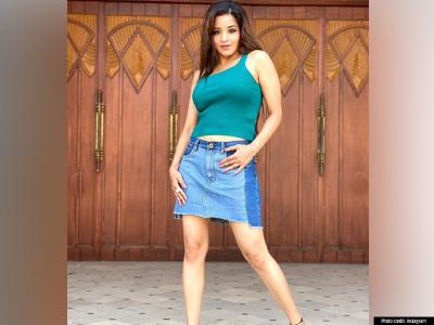 या फोटोत मोनालिसाने ग्रीन कलरचा टँक टॉप आणि डेनिम शॉर्ट स्कर्ट घातला असून ग्लॅमरस पोझ देताना दिसते आहे.