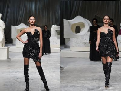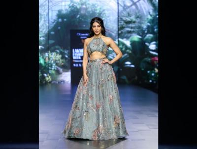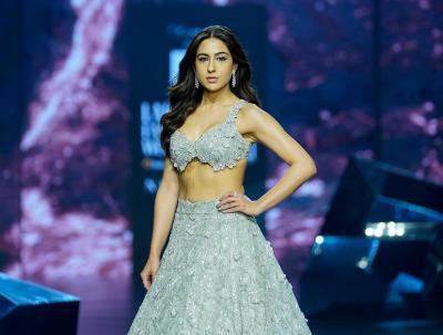 अभिनेत्री सारा अली खानने सिल्वर रंगाचा फ्लोरल लेहेंगा परिधान करून रॅम्प वॉक केला.