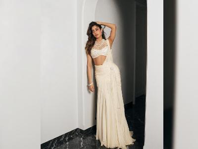 या फोटोंमध्ये जान्हवी कपूर सिक्विन बीड साडीत दिसत आहे. तिने शेअर केलेल्या फोटोंमध्ये जान्हवी कपूरची स्टाईल आणि लूक तिच्या चाहत्यांना आकर्षित करत आहे.
