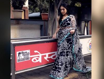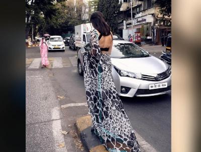 मुंबईतील रस्त्यांवर लेपर्ड प्रिंट साडी परिधान करून अभिनेत्रीने काही फोटोज काढले आहेत.