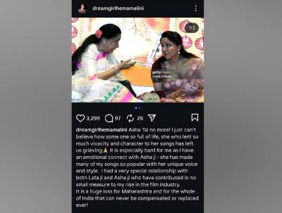 आशा भोसले यांच्या निधनानंतर बॉलिवूडसह अनेक मराठी कलाकारांनी आपल्या भावुक प्रतिक्रिया दिल्या आहेत. अभिनेत्री हेमा मालिनी यांनी आपल्या अधिकृत सोशल मिडिया अकाउंवर पोस्ट शेअर करत लिहिलंय, "आशाताई आता राहिल्या नाहीत! जी व्यक्ती इतकी चैतन्यमय होती—जिने आपल्या गाण्यांमध्ये जिवंतपणा आणि वैशिष्ट्य बहाल केले होते—तीच आज आपल्याला शोकात लोटून गेली आहे, यावर माझा विश्वासच बसत नाही. माझ्यासाठी हे विशेषतः कठीण आहे, कारण आशाजींशी माझे एक भावनिक नाते जोडलेले आहे."