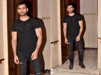बॉलिवूडच्या कलाकारांसोबत टिव्ही स्टार करण देखील मनिष मल्होत्राच्या घराबाहेर दिसला.