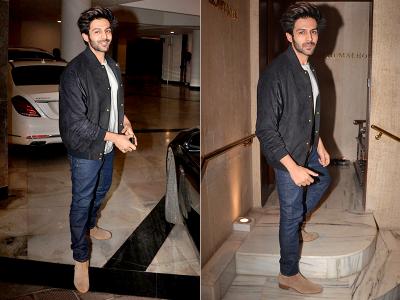 कार्तिक आर्यनने फोटोग्राफर्सना पाहाताच एक छानशी पोझ दिली