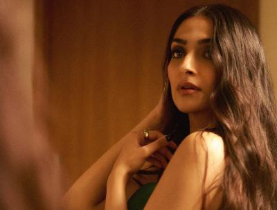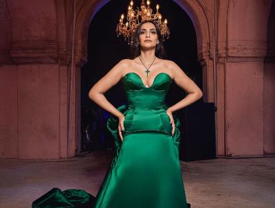यात सोनम ग्रीन कलरचा गाऊनमध्ये दिसत आहे. सोनमने केस मोकळे सोडले असून गळ्यात लॉकेट परिधान केलं आहे.