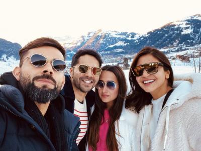 विराट कोहली, वरुण धवन, नताशा व अनुष्का यांचा स्विर्त्झलँडमधील ग्रुप फोटो