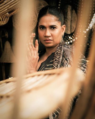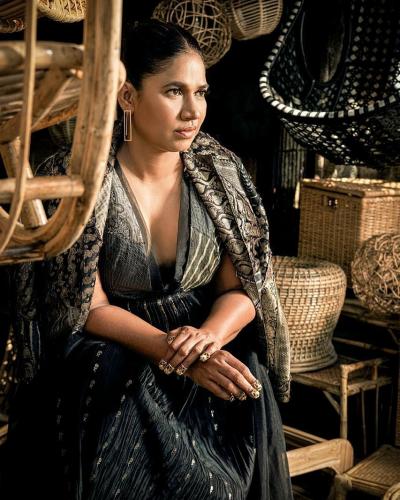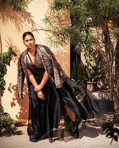 आयफा पुरस्कार सोहळ्यासाठी छाया कदम यांनी प्रिंटेड डीप नेक गाऊन परिधान केला होता.